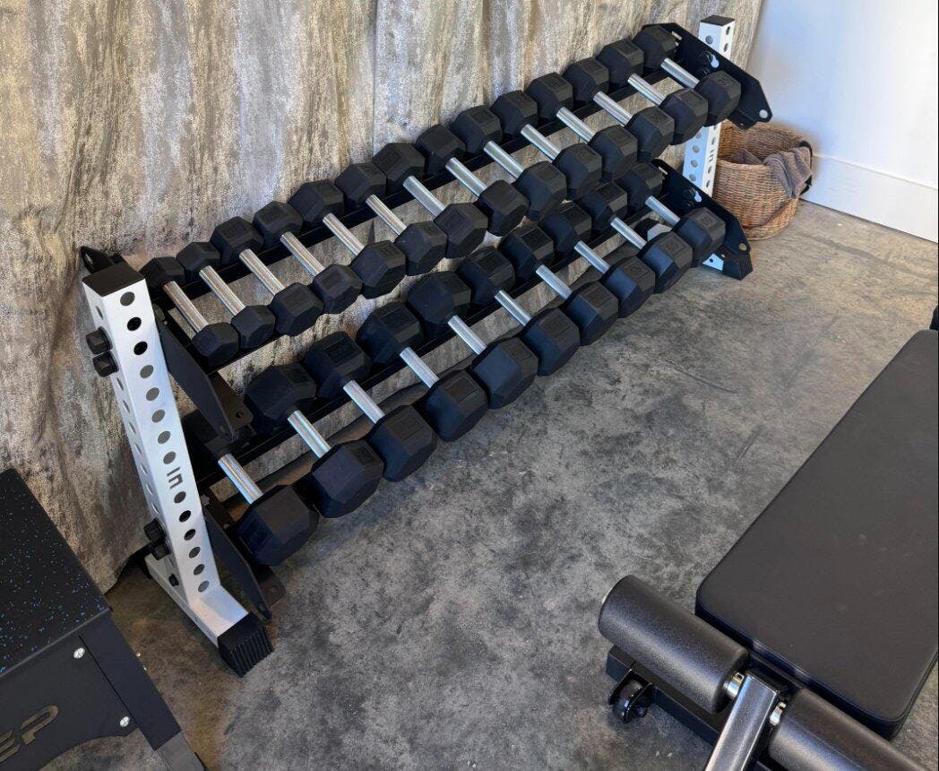 2-Tier Support & Maximized Spacing: Our 2-Tier Horizontal Rack was designed to maximize your storage space and can hold anywhere from 10-20 pairs of dumbbells depending on your add ons.