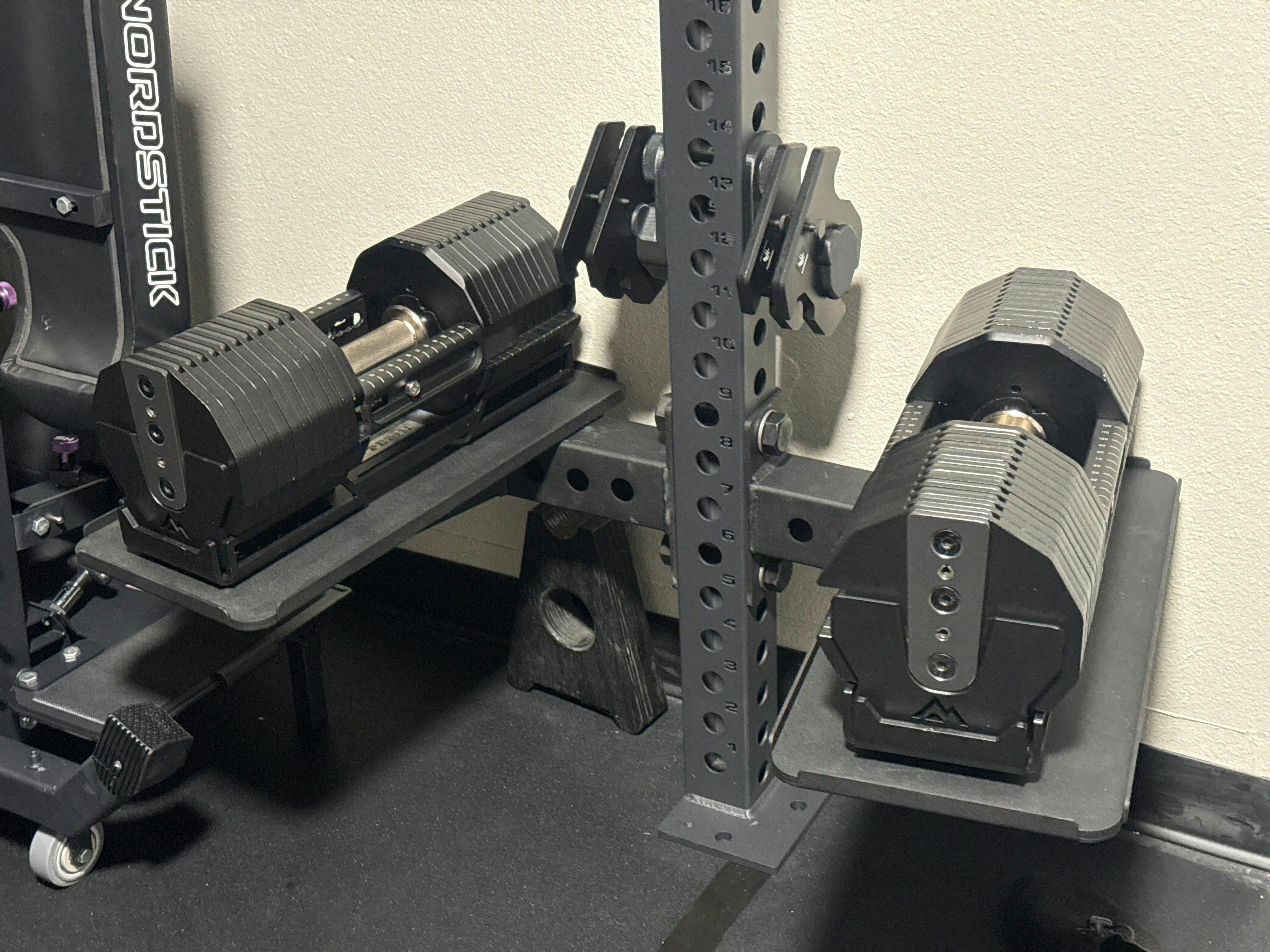Our Adjustable Dumbbell Storage Arms are purpose-built to accommodate almost all adjustable dumbbells. Our arms can be attached to any 3x3 upright. You can adjust the height and angle of the arms in order to fit your preferences.