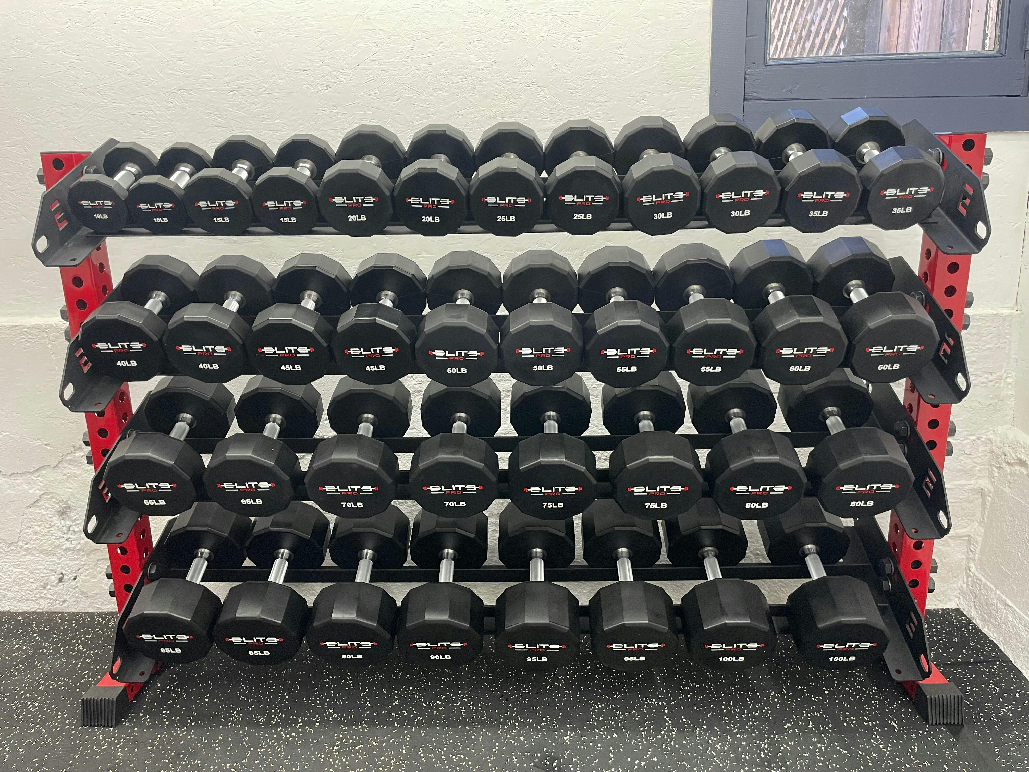 4-Tier Support & Maximized Spacing: Our 4-Tier Horizontal Rack was designed to maximize your storage space and can hold anywhere from 15-25 pairs of dumbbells depending on your add ons.