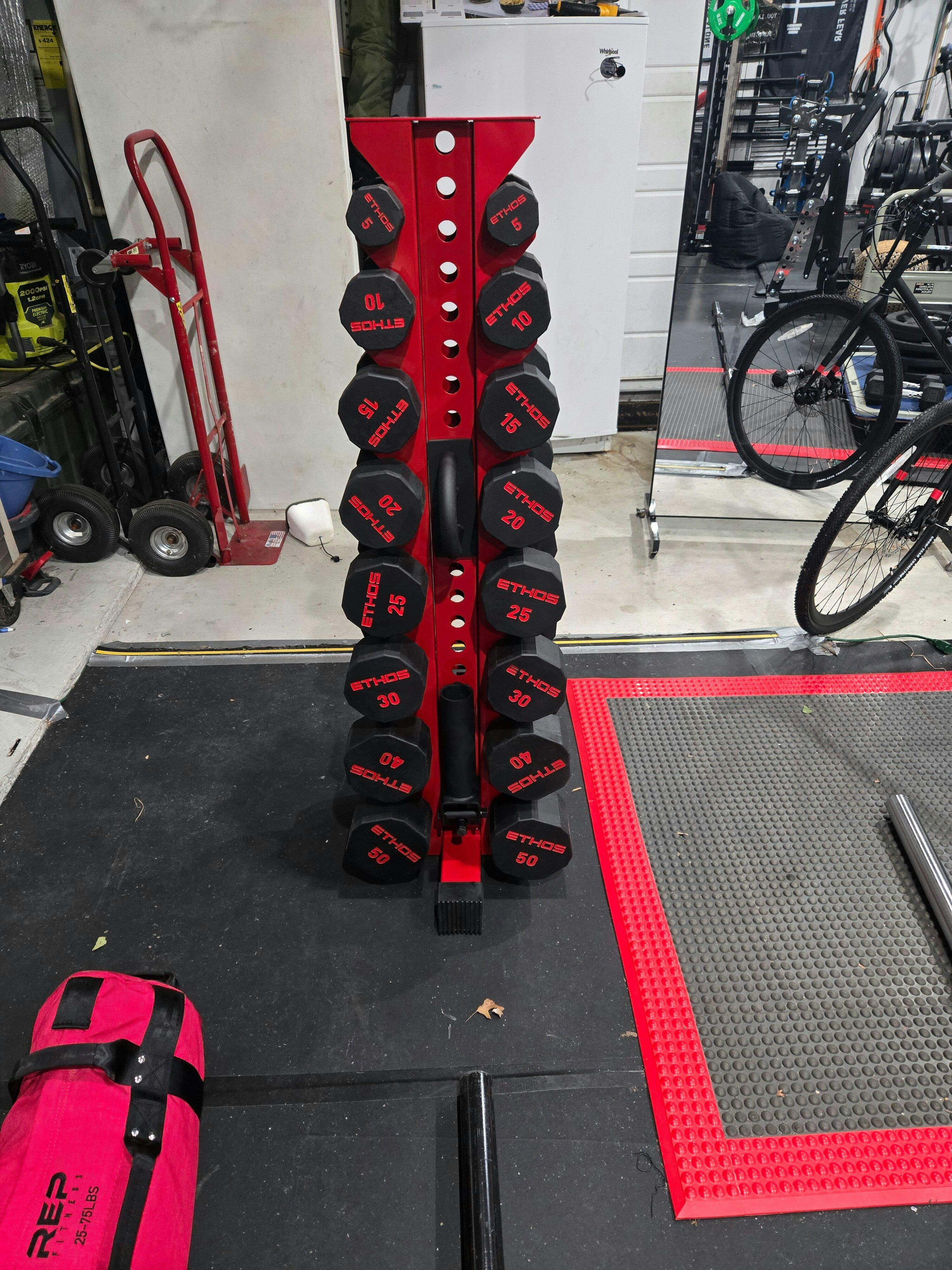 Maximize your space by converting our vertical dumbbell rack into more than just storage.
